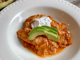 If you are into batch cooking, you can easily create a large amount of chicken. You can use it for this or other recipes like Campfire Nachos, tacos, burrito bowls, served over potatoes, etc. The cooked chicken and the full recipe freeze really well too! I actually have 2 containers of this enchilada casserole in the freezer as I write this. When I want to use it, I place in the refrigerator or on the counter to thaw a bit. Then I can reheat in the microwave. The kids love taking to school for lunch too!